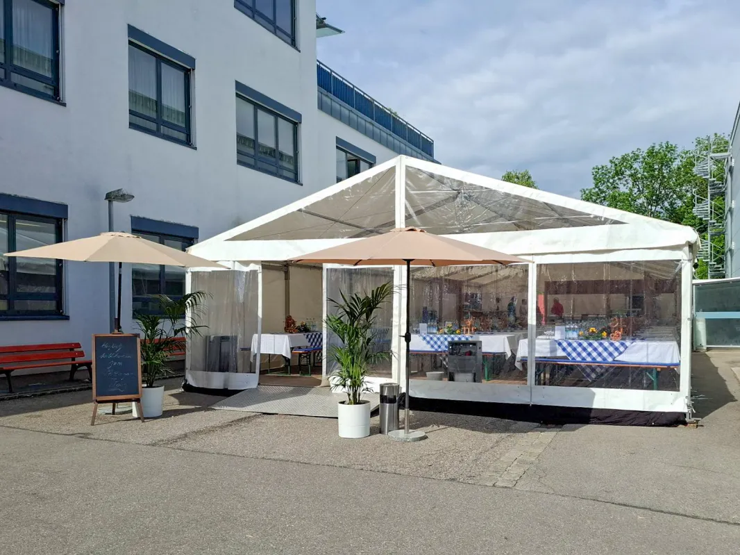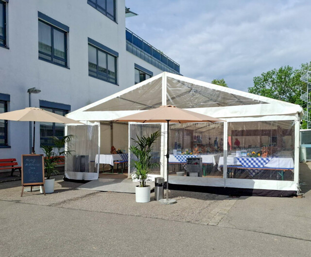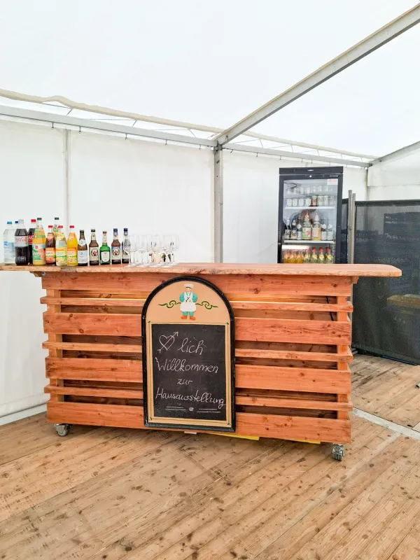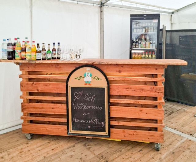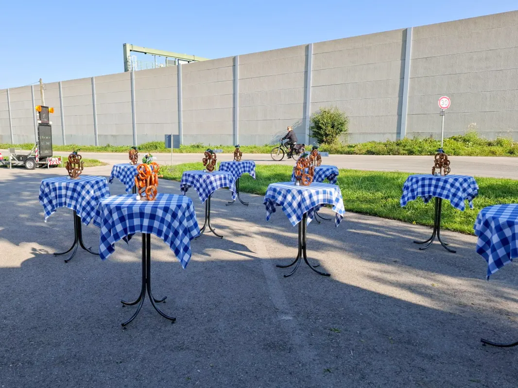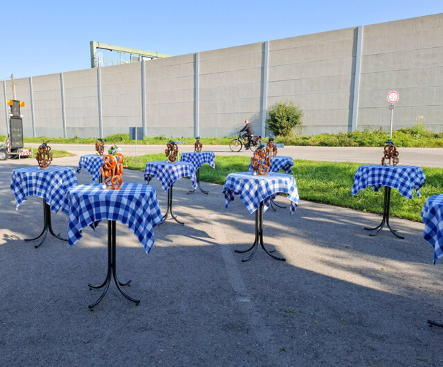 - 30 Bierzeltgarnituren mit breiten Tischen sowie Sitzauflagen